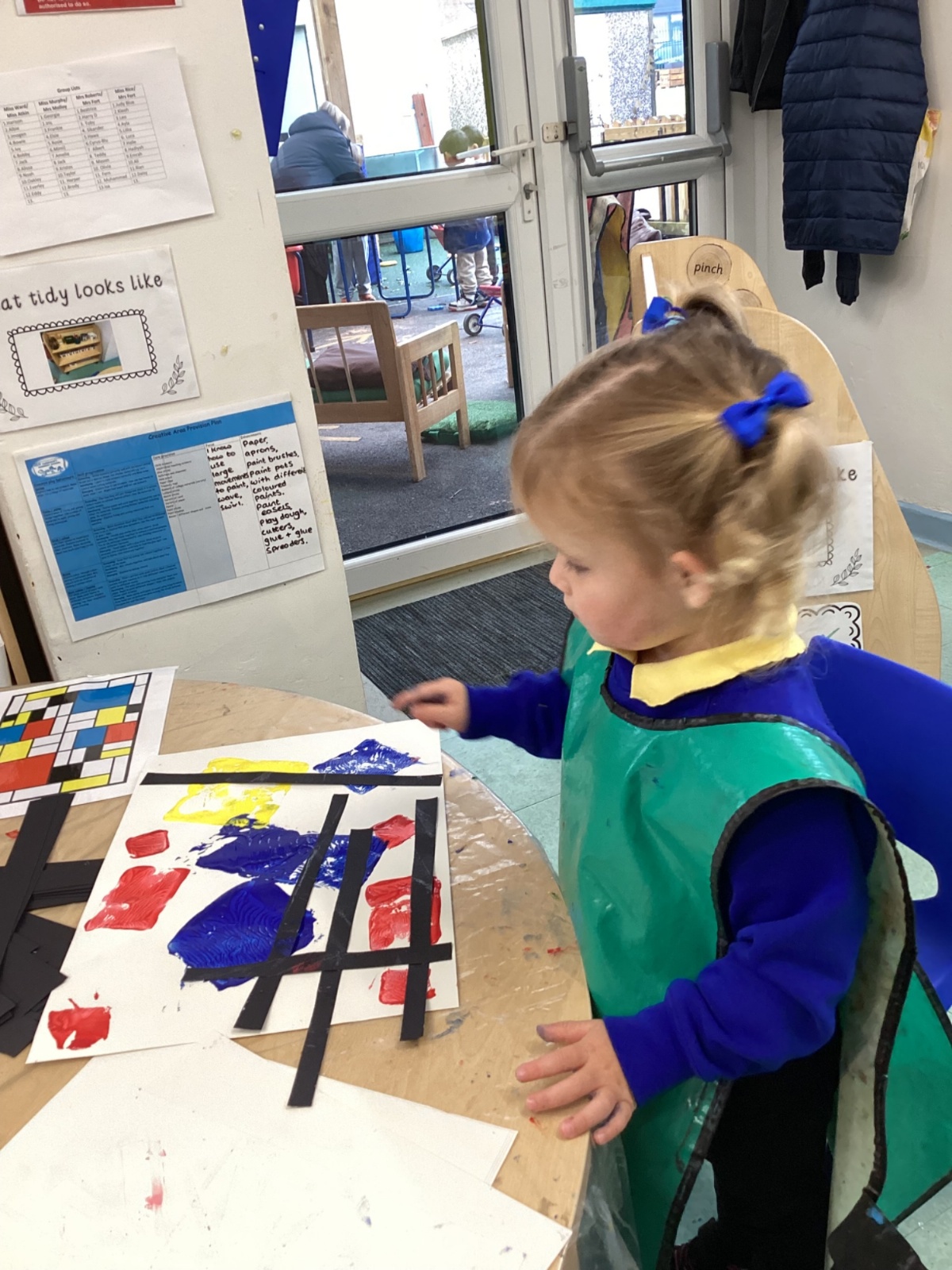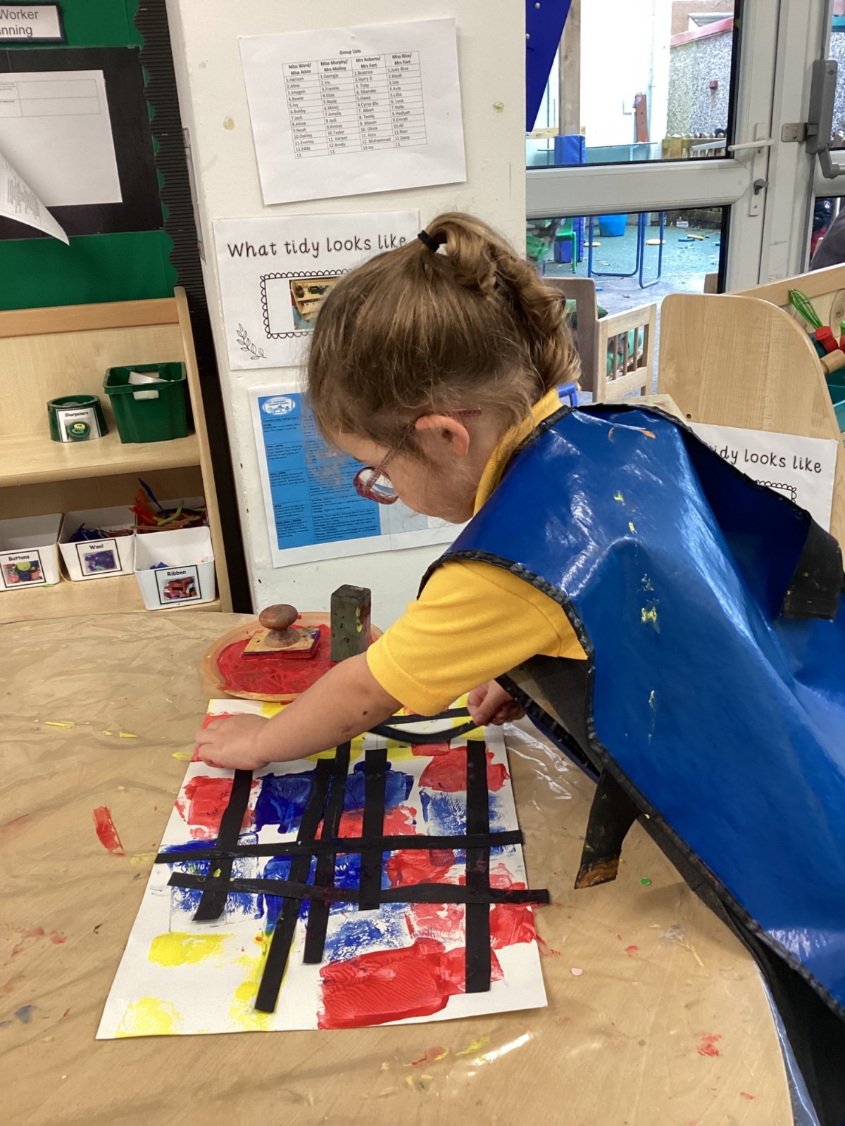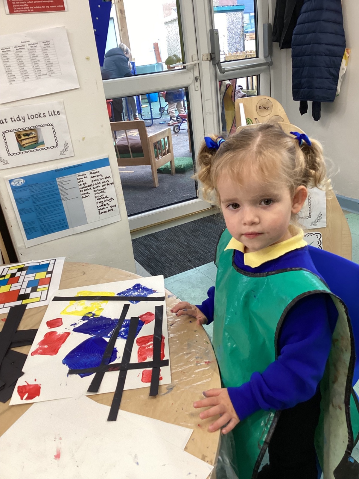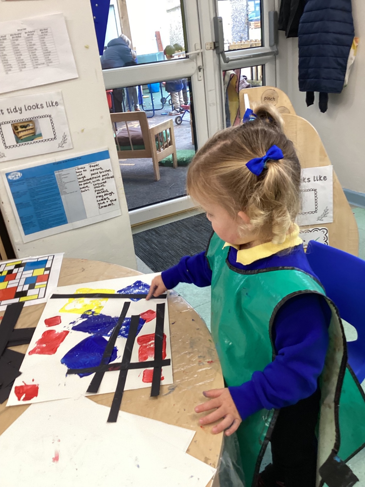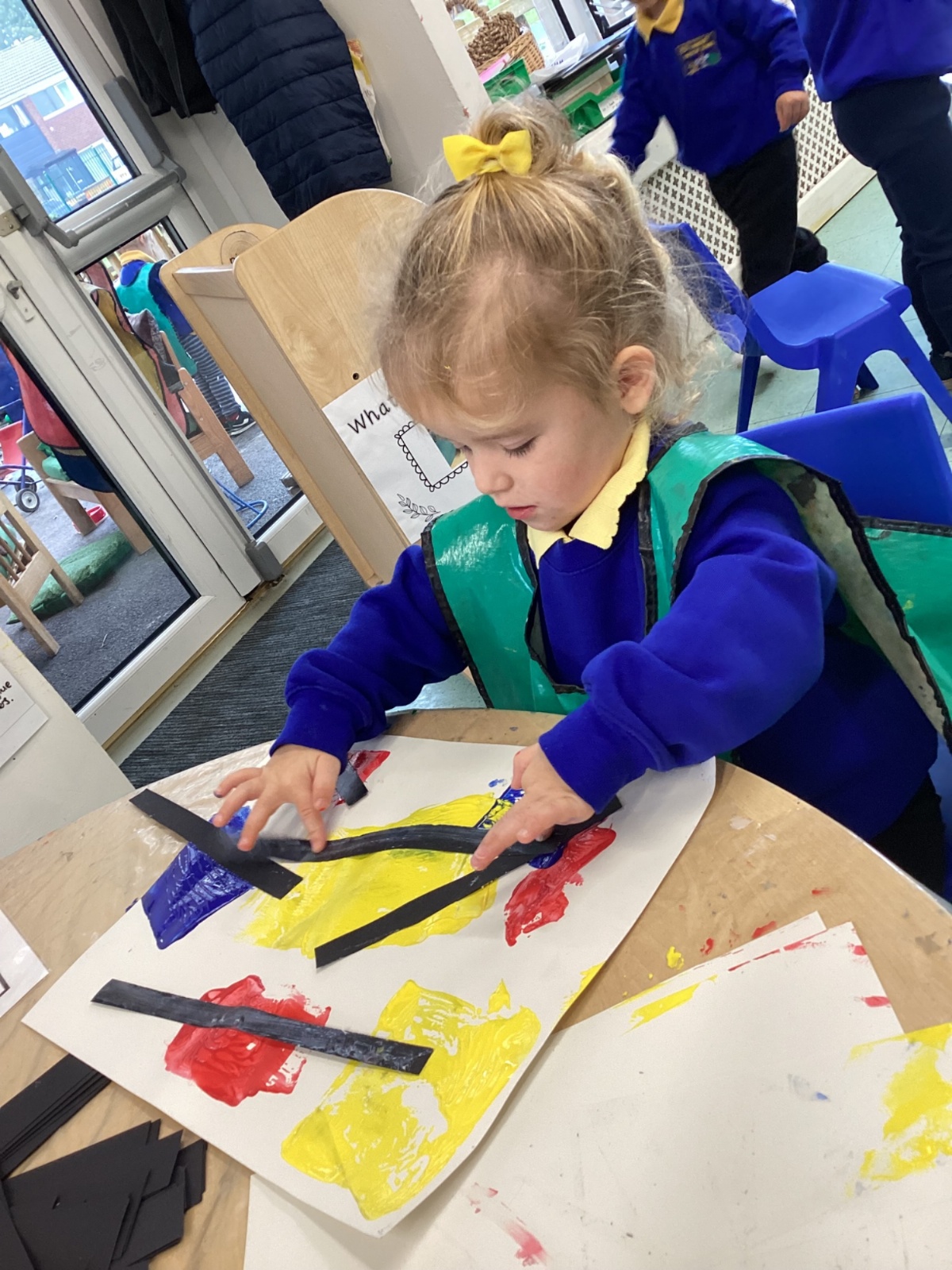 This week in nursery, we have been exploring the work of the famous artist Piet Mondrian! The children have been learning all about the primary colours, red, blue, and yellow and using them in their own creative artwork. We had lots of fun printing with squares and rectangles using paint. We also recreated Mondrian-inspired pieces using black lines and wax crayons. The children loved experimenting with shapes and colours and lines using a variety of different mark-making materials and tools.