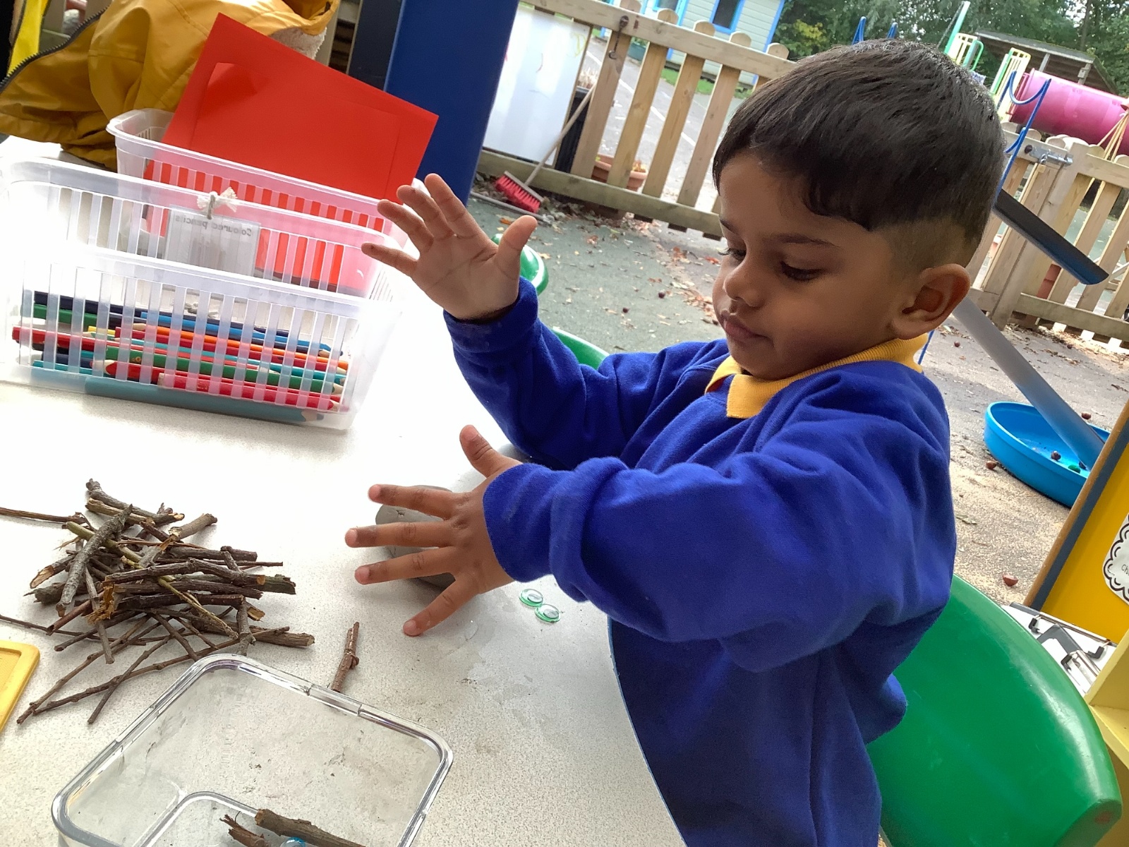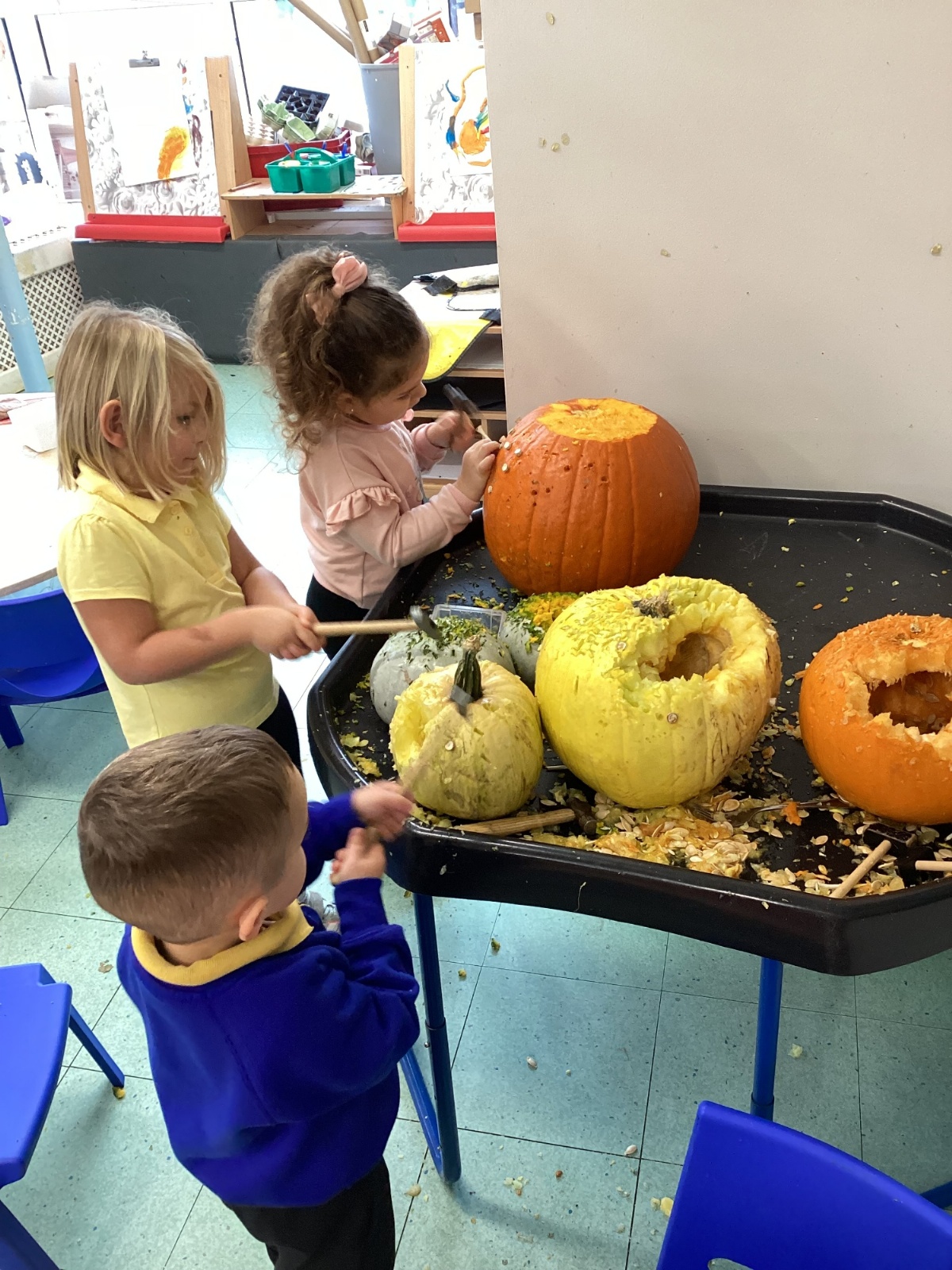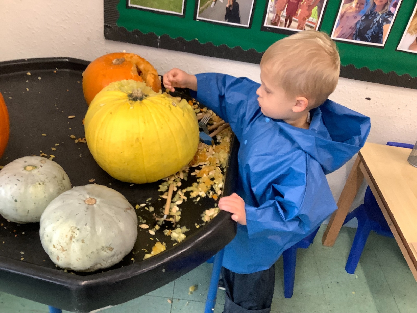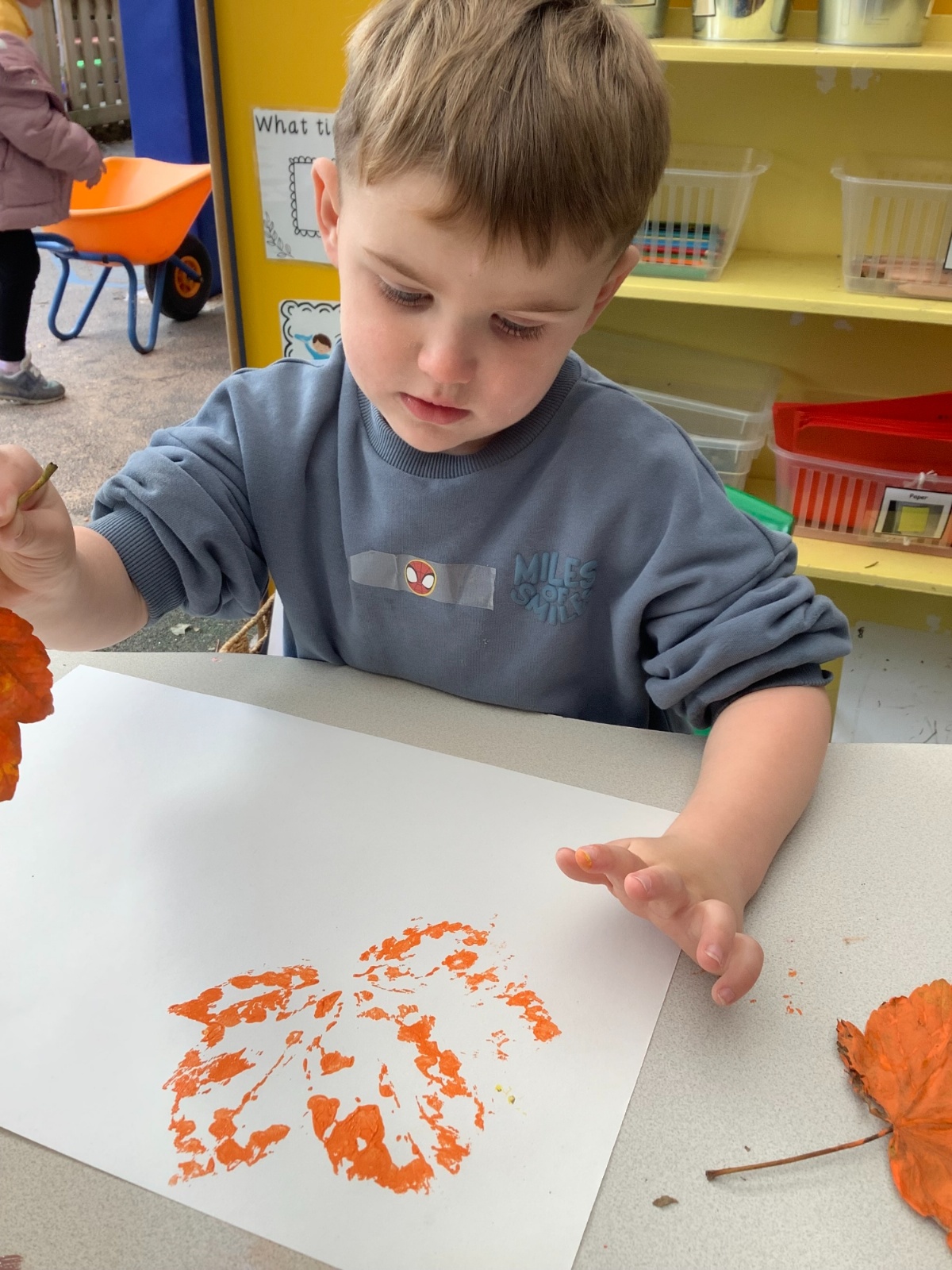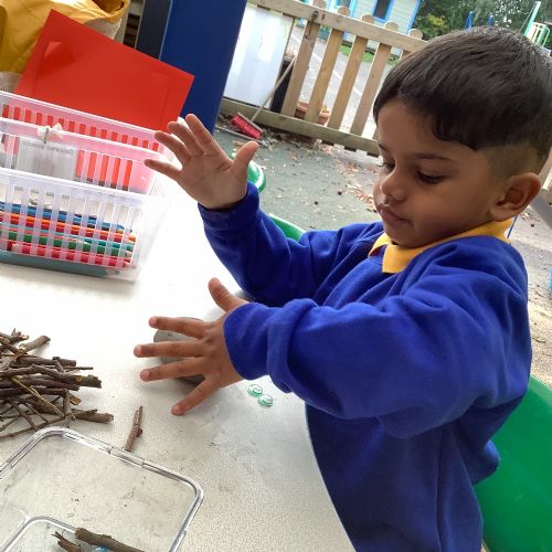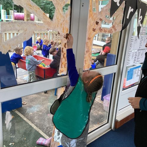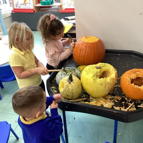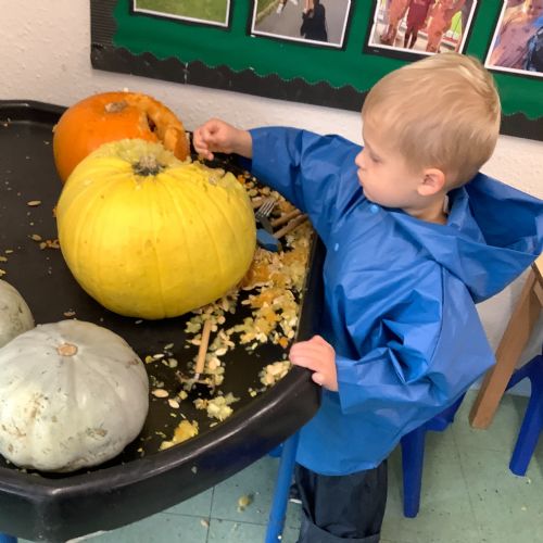 We have had another busy week in nursery! We have been thinking all about autumn and the changes that we see around us. The leaves are falling all over the nursery playground and we have used these in different ways in our learning this week. We have been making autumnal pictures, using leaves in our art and in our mud kitchen. We have enjoyed our sports coach visit and exploring pumpkins with our senses. What a lovely week. we have had!